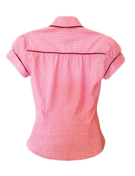 Loaded with details, this semi fitted sweet cowgirl shirt is made from soft poly cotton and features a keyhole opening below cute black ribbon neck ties.