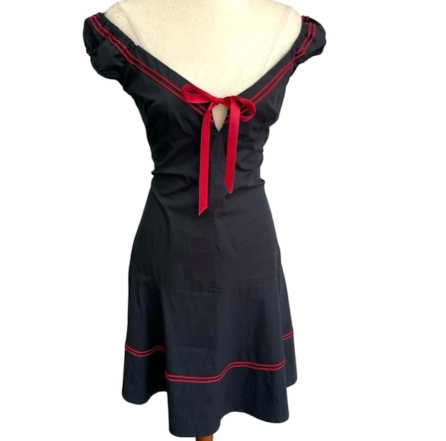 Rock out in this playful nautical inspired A line dress ! Empire line Front satin ties Elasticised sleeves Made from 97% cotton and 3% elastane
